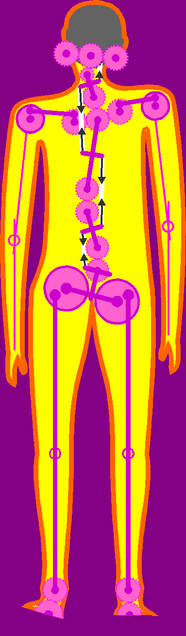 Becken-Wirbelsäule-Schultergürtel-Kopfgelenke mit den